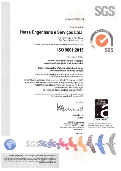 No mês de Dezembro de 2018, a Hersa Engenharia obteve a Recertificação de seu sistema de Gestão ISO 9001:2015, através de auditoria da empresa SGS. Por mais de quatorze anos a empresa segue trabalhando de acordo com os critérios de qualidade estabelecidos por esta Norma.